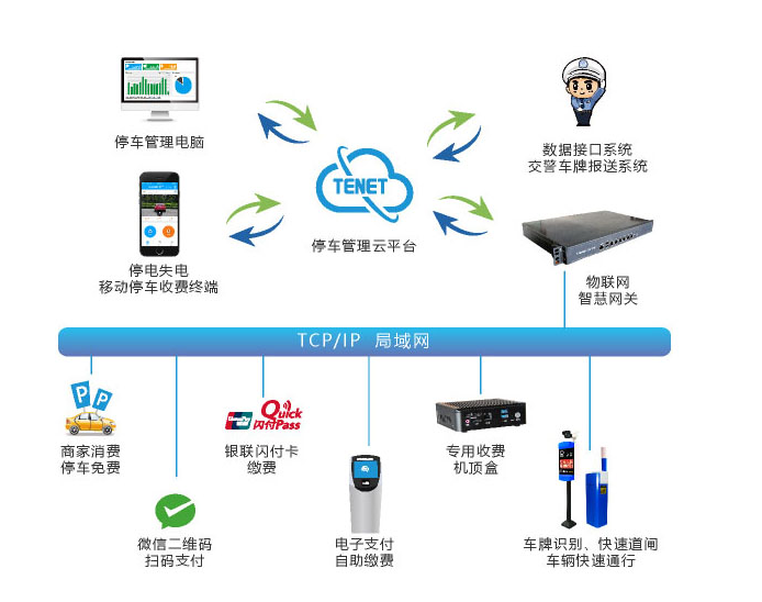 智慧停车管理系统基于物联网技术提出了大中型停车场的管理应用方案,采用高清车牌识别技术和快速道闸技术,以车辆快速通行管理、中央现金收费、自助微信扫码缴费、商家消费打折、银联卡支付、自助缴费机缴费等为核心功能,同时设计了车位池管理、车辆分组通行管理等功能,实现商业消费、人员、车位信息共享,提高资源利用率。